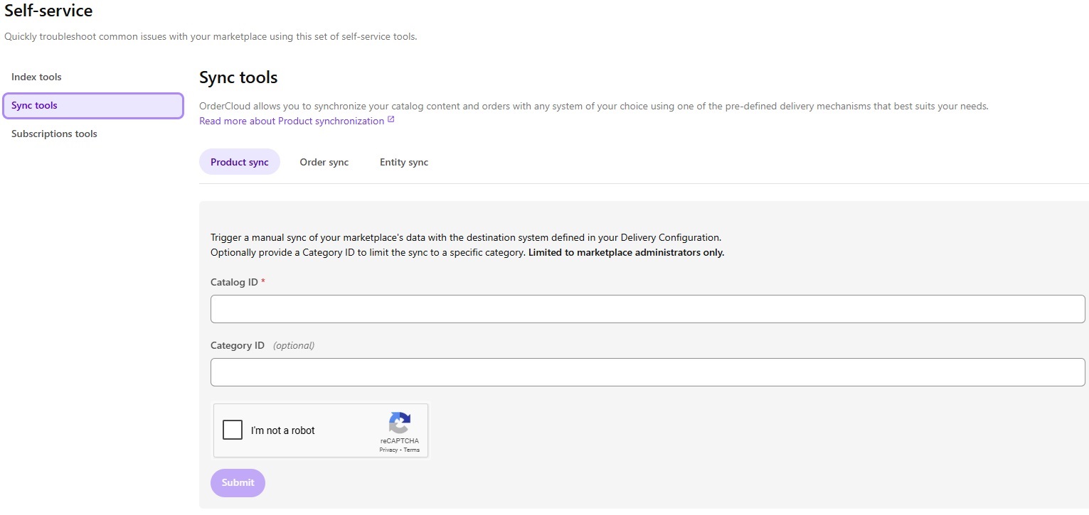 - Go to the Sync Tools section in the OrderCloud Portal.