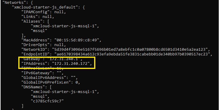 - Then ran the following command to inspect the container and retrieve its IP address: