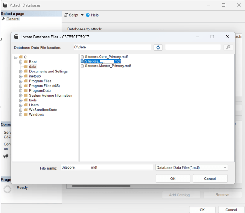 Step 2: Place the .mdf file in the XM Cloud SQL folder