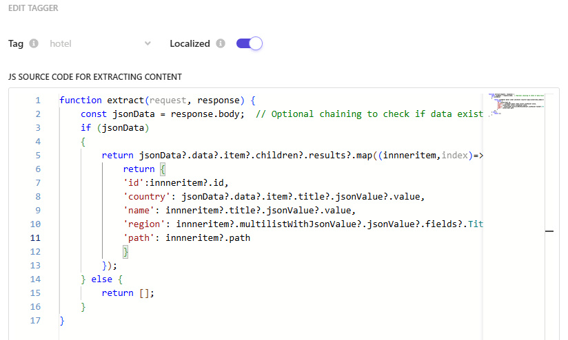 In the document extractor configuration, I enabled the “Localized” toggle. This ensures that documents are indexed based on the extracted locale.